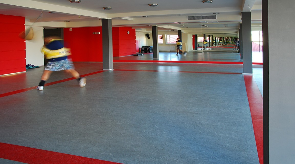 Trwałość i odporność: Marmoleum Sport doskonale sprawdza się w miejscach o dużym natężeniu ruchu oraz przy ciężkim sprzęcie sportowym. W połączeniu z odpowiednim podłożem, podłoga jest odporna na obciążenia i intensywne użytkowanie, zachowując swoje właściwości przez długi czas.