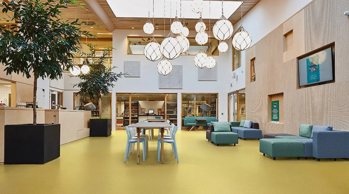 Wzory z tej kolekcji doskonale sprawdzają się w miejscach, gdzie podłoga ma harmonijnie komponować się z otoczeniem, takich jak placówki służby zdrowia, obiekty edukacyjne czy budynki użyteczności publicznej. Dodatkowo, wyraziste pastele i jasne akcenty kolorystyczne ułatwiają tworzenie stref funkcjonalnych oraz orientację w przestrzeni.