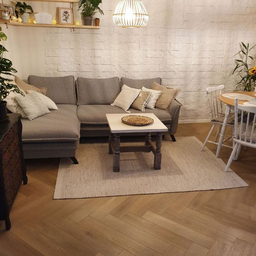 Wysoka odporność: Wyposażone w warstwę użytkową o grubości 0,55 mm, panele są odporne na zarysowania, wgniecenia, plamy oraz blaknięcie, co zapewnia ich długowieczność i estetyczny wygląd przez wiele lat.