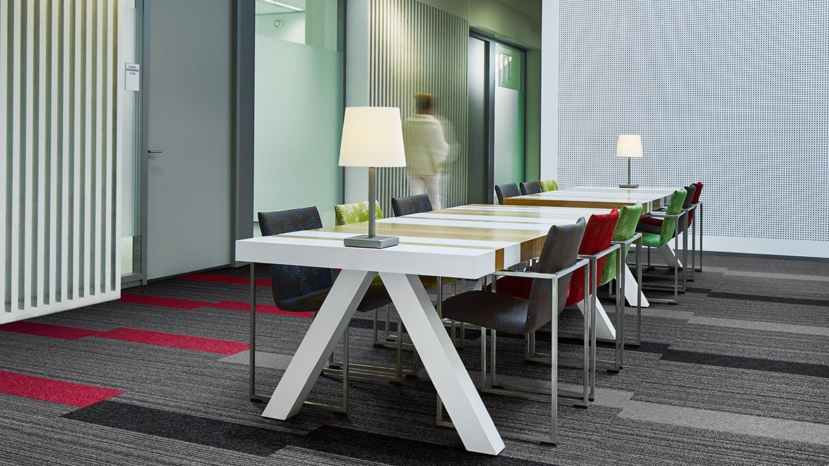 - Tessera Create Space 1: Płytki o budowie pętelkowej dostępne w 18 kolorach, wykonane w 100% z regenerowanego poliamidu ECONYL®. Zawierają 75% materiałów pochodzących z recyklingu, co czyni je ekologicznym wyborem dla nowoczesnych przestrzeni biurowych.