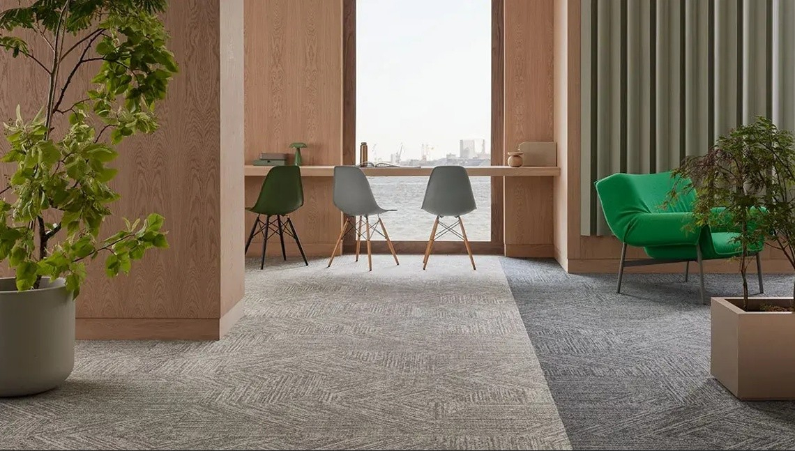 - Wysoka zawartość materiałów z recyklingu: Standardowe płytki dywanowe Tessera zawierają ponad 60% materiałów pochodzących z recyklingu. W serii Evolve+ Forbo zwiększył ten udział, osiągając ponad 75% zawartości recyklingowanej, co znacząco obniża ślad węglowy produktów.